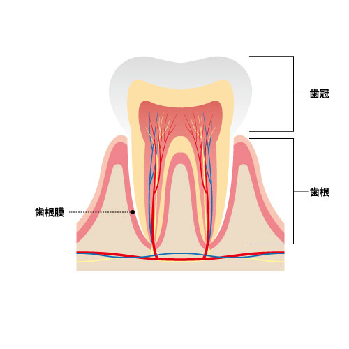 インプラントと天然歯の大きな違いのひとつ、それは「歯根膜(しこんまく)」という組織の有無にあります。 歯根膜は、歯の根とあごの骨の間にある薄いクッションのような組織ですが、その役割は非常に重要です。