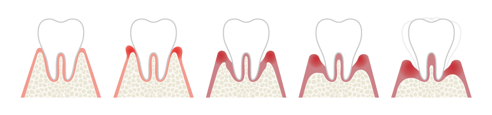 特に多いのが、歯周病によって骨が吸収されてしまったケースです。歯がグラグラして抜歯に至った場合、その原因の多くは歯周病による骨の吸収です。歯周病が進行すると、歯を支えているあごの骨が炎症によって溶けてしまい、歯がグラグラするようになります。